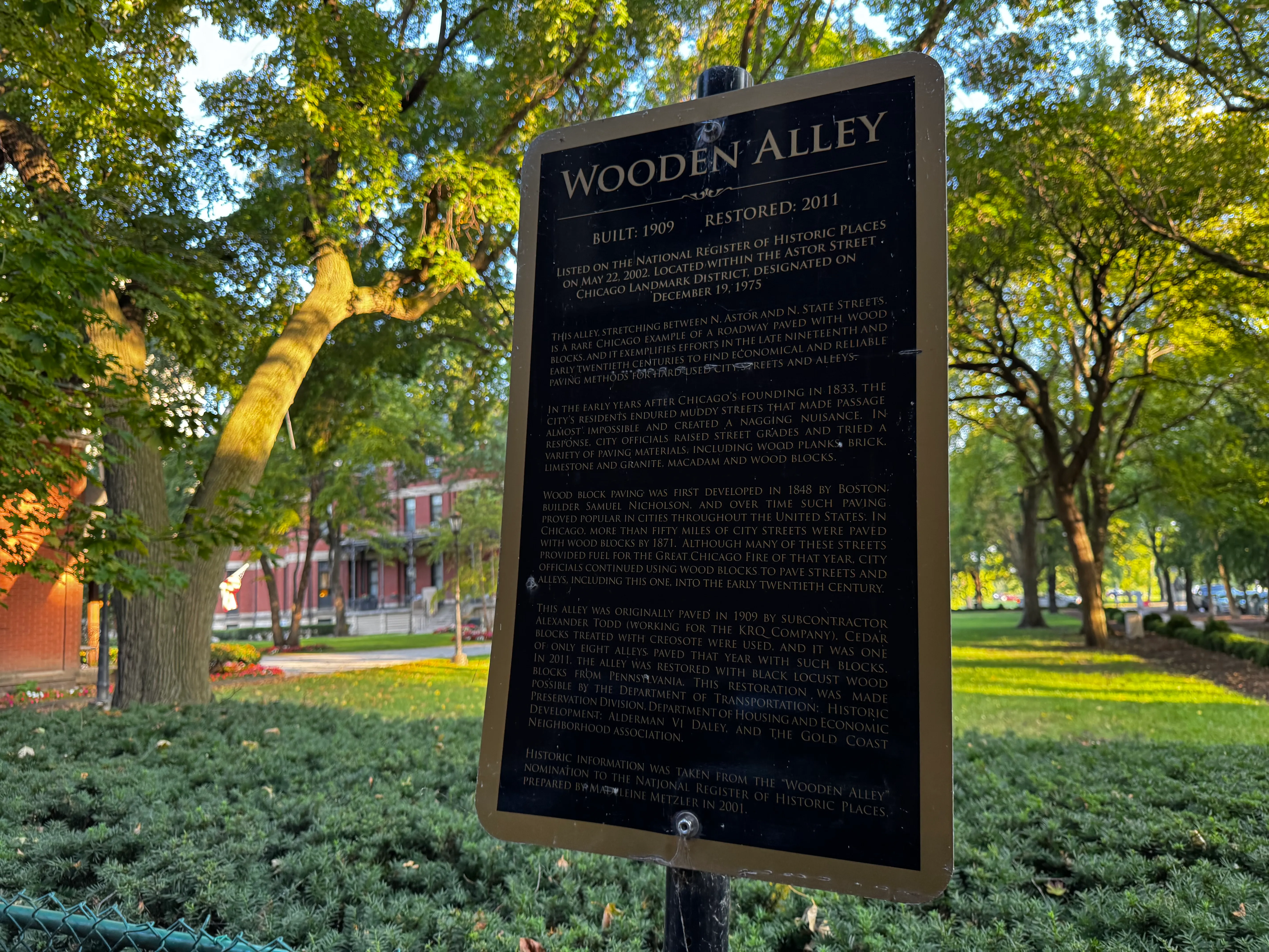 Walking down this alley is like flipping open a forgotten vinyl record that still plays perfectly. Each creak of the wooden pavers is a gritty reminder of when Chicago was a boomtown of industry and innovation. Back then, wooden streets were the rage—cheap to build, easier on horses, and surprisingly quiet. Most were paved over or ripped out as the automobile took over, but this stubborn survivor—running between State Street and Astor Street in the Gold Coast—endures as one of the last of its kind in America.
